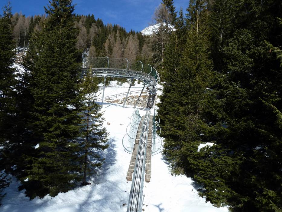 Der Alpine Coaster Gardonè befindet sich an der Bergstation der Gondelbahn von Predazzo auf 1650 m Höhe. Er ist 980 m lang, bietet 2 Jumps und einen 360-Grad-Kreisel. Bei Geschwindigkeiten bis zu 40 km/h kommt hier richtig Spaß auf.