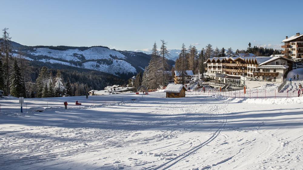 Erleben Sie die unvergleichliche Lage direkt an den Pisten in Obereggen am Latemar. Skifreunde können sich auf 49 bestens präparierte Pistenkilometer, einen Snowpark, Rodelbahnen und vieles mehr freuen.
