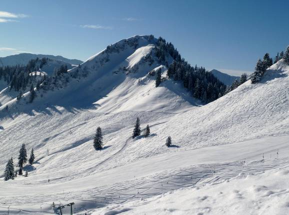 Für die Könner wartet eine schwere Abfahrt am Fallenboden Nord. Unterhalb des 1735m hohen Falben locken einige Tiefschneegebiete. Im Skigebiet selber hat man auch Möglichkeiten einen Abstecher in den Tiefschnee zu machen.