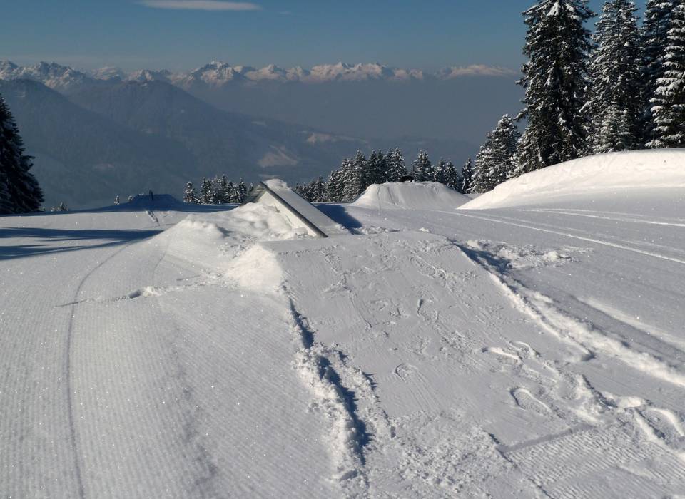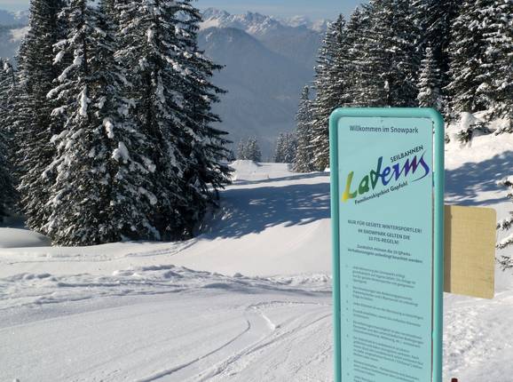 Der Snowpark Laterns ist ideal für Anfänger und Fortgeschrittene und befindet sich direkt an der Sechsersesselbahn Nob. Neben den Kickern und Rails befindet sich auch ein großer Jump am Ende des Funparks.