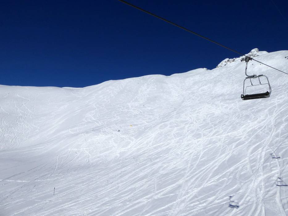 Schwarze Abfahrt unterhalb der Gondelbahn Gandegg-Hockenhorngrat