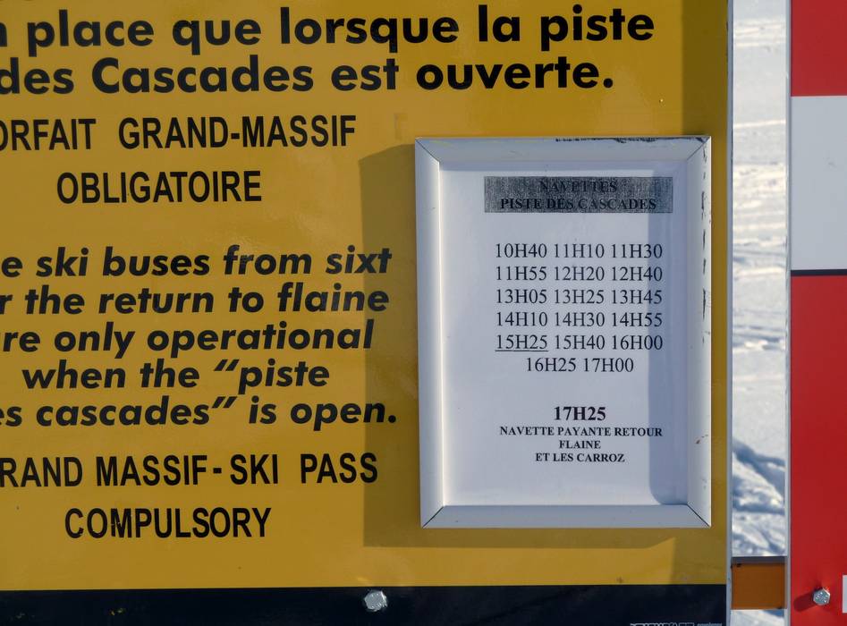 Orientierung (Pistenplan, Informationstafeln, Ausschilderung) und Sicherheit im Skigebiet Le Grand Massif – Flaine/Les Carroz/Morillon/Samoëns/Sixt