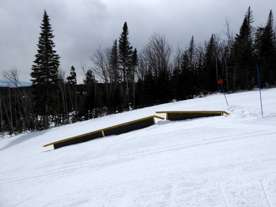 Der Terrain Park vom Skigebiet Le Massif de Charlevoix befindet sich im obersten Bereich des Skigebiets am Tellerlift Téléski du Sommet. Der Park ist leicht bis mittelschwer und auf Familien ausgelegt. Das Panorama auf den Sankt-Lorenz-Strom ist überwältigend.