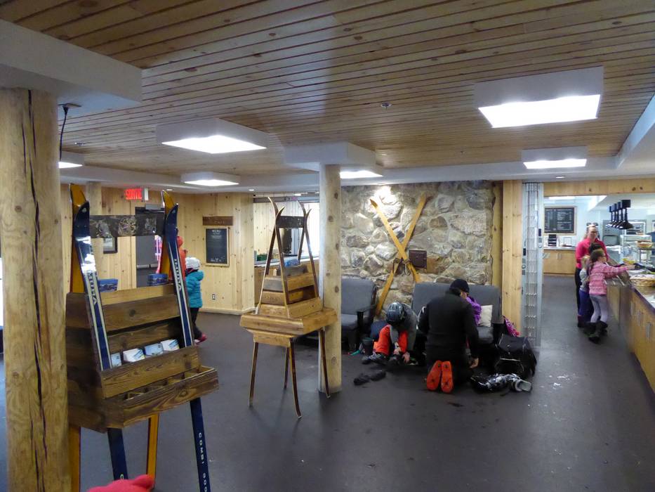 In der gemütlichen Lodge kann man wunderbar einkehren. Im Erdgeschoss gibt es ein Selbstbedienungsrestaurant. Im Obergeschoss wartet ein Pub mit Bar und Kamin.
