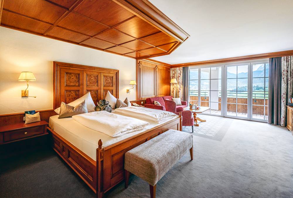 Die Suiten bieten jeden erdenklichen Komfort. Durch die freie Lage des Hotels können Sie Ihren persönlichen Logenplatz mit Blick auf die Zugspitze genießen.
