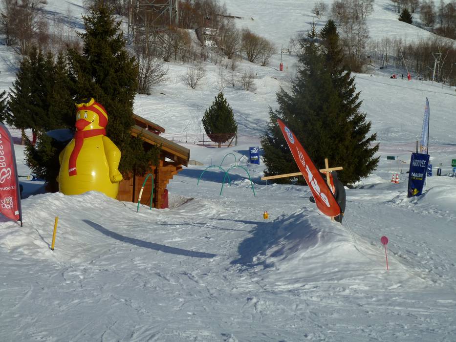 Das zweite Kinderland der ESF Les Deux Alpes ist etwas kleiner und befindet sich direkt neben dem Hauptgebäude im Zentrum - hier lernt man spielerisch mit den Materialien der französischen Piou-Piou-Kinderländer.