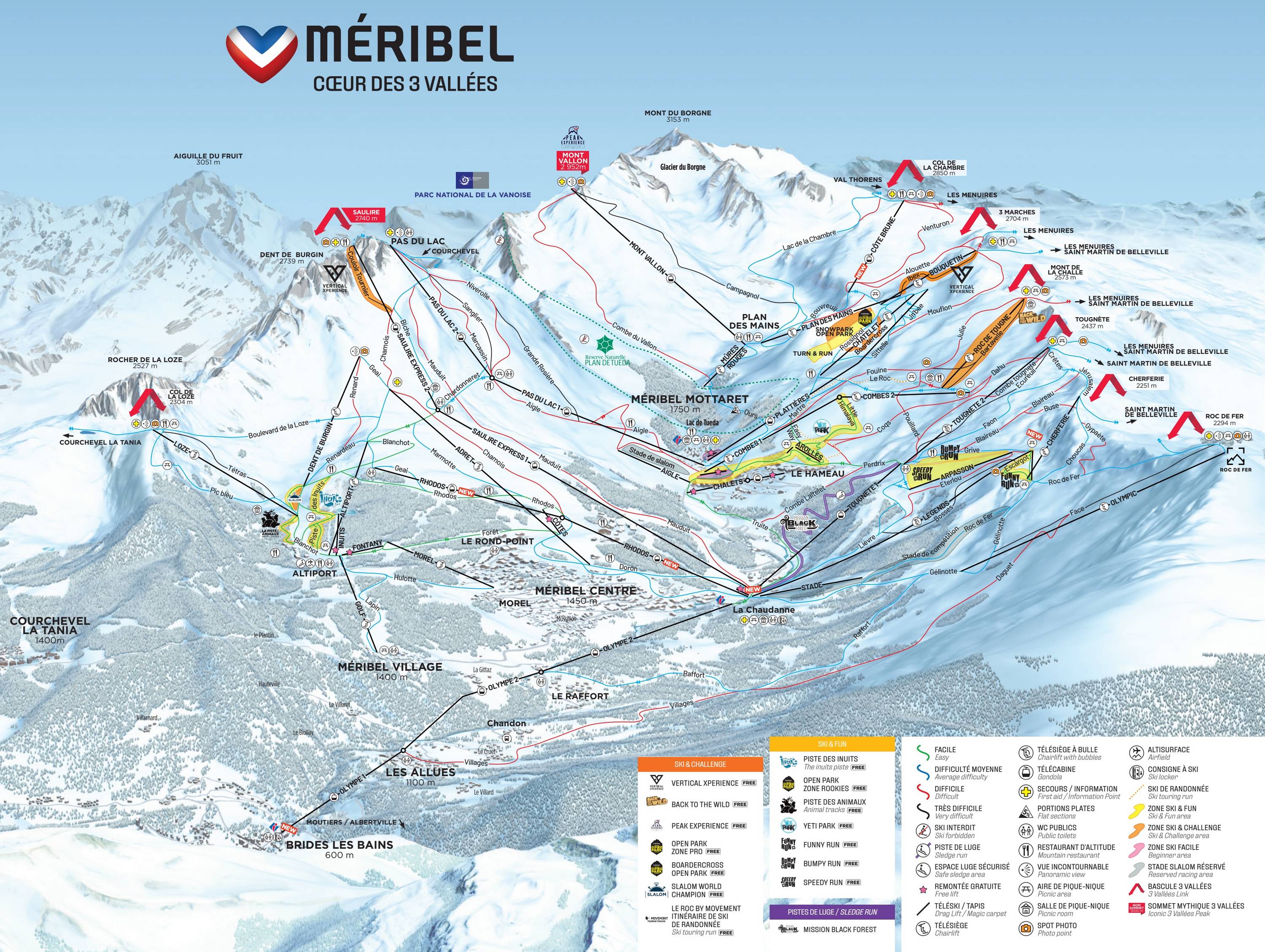 Orientierung wird einem im Skigebiet Les 3 Vallées leichtgemacht. Gerade weil das Skigebiet sehr groß ist, achtet man auf eine eindeutige Beschilderung. An den Stellen, wo man die Täler wechseln kann, wird auch darauf hingewiesen, wie wahrscheinlich eine wetterbedingte Schließung der Übergänge ist. An den Talstationen und den Bergstationen findet man moderne Pistenpläne mit Echtzeitinformationen zum Liftbetrieb.