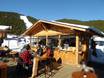 Die Berghütte bietet Grillspezialitäten und regionale Speisen. Bei schönem Wetter lockt die Sonnenterrasse. Bei schlechtem Wetter wärmt der Kamin in der Hütte.