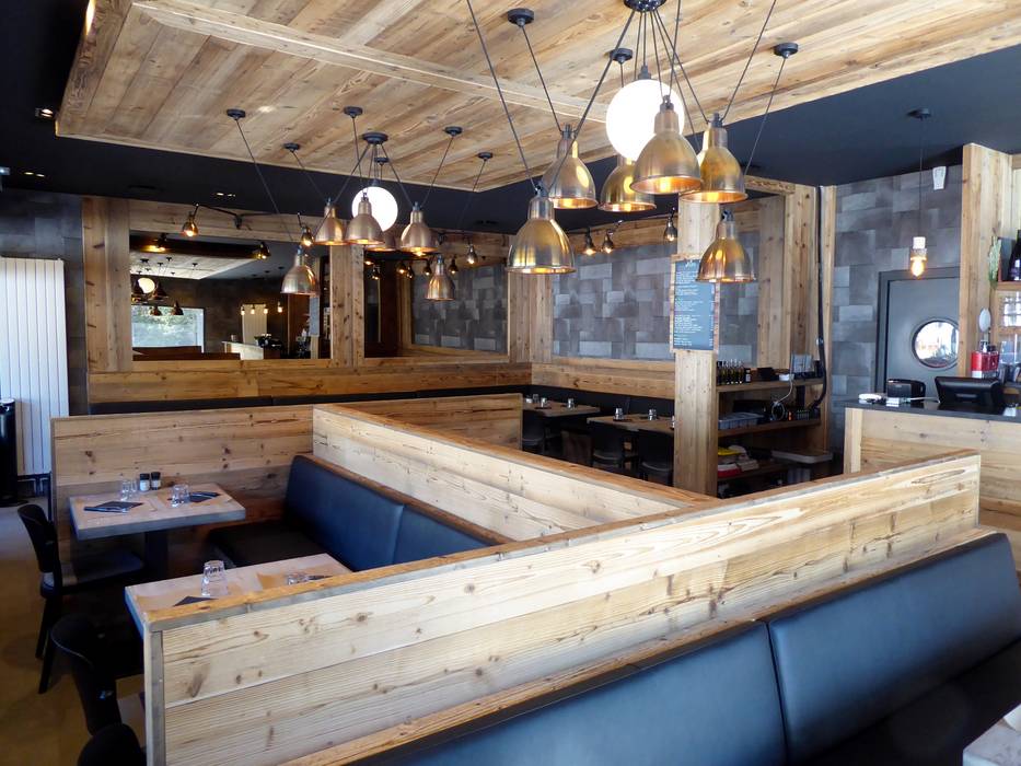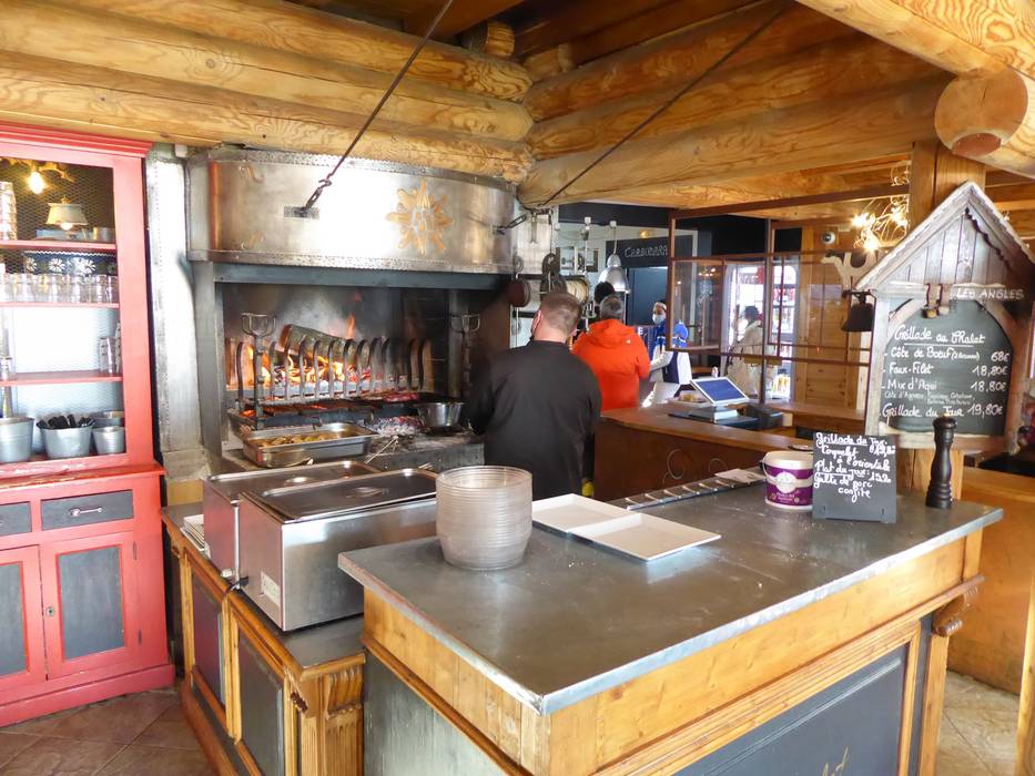 Das Le Chalet bietet eine große Sonnenterrasse und Stuben mit viel Holz auf zwei Etagen. Das Selbstbedienungsrestaurant bietet Grillspezialitäten und eine Bar.