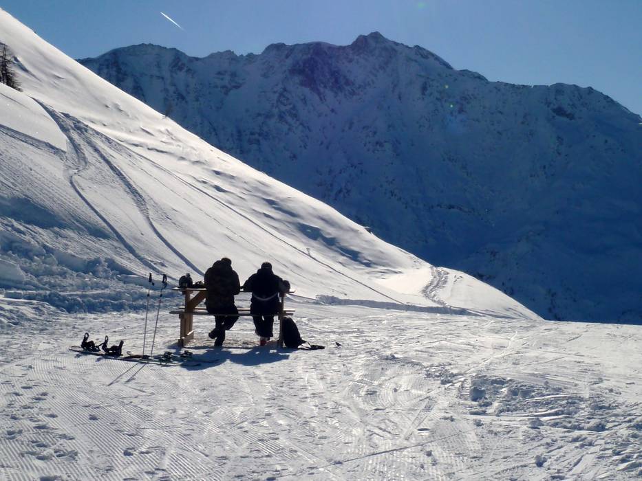 Tipp für Selbstversorger: Überall in Les Arcs findet man an schönen Stellen Holzbänke fürs mitgebrachte Picknick. Besonders schöne Aussicht hat man von Bänken um die Bergstation des Arpette und am Col des Frettes. Geschützte Plätze für ungemütliches Wetter gibt es an der Talstation des Marmottes.