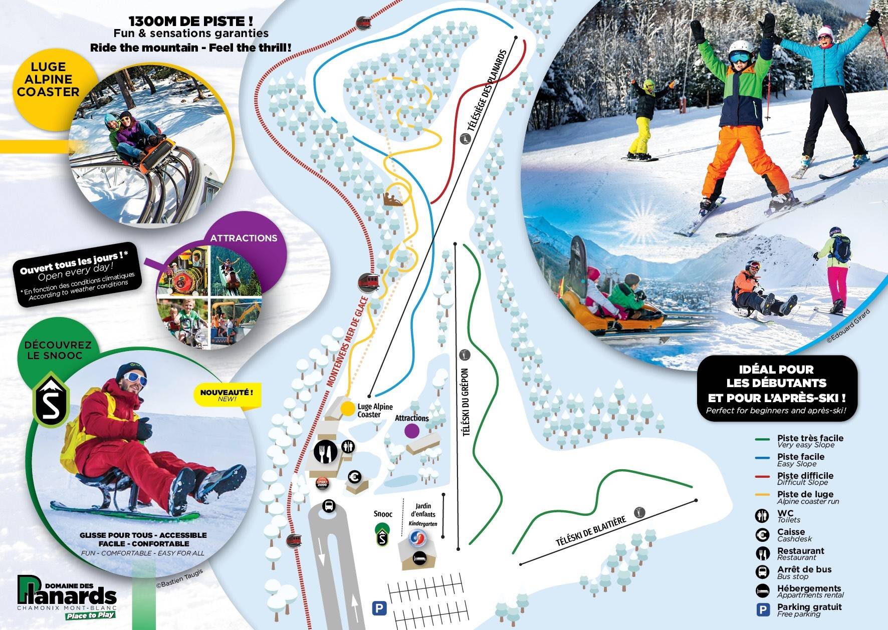 Orientierung (Pistenplan, Informationstafeln, Ausschilderung) und Sicherheit im Skigebiet Les Planards