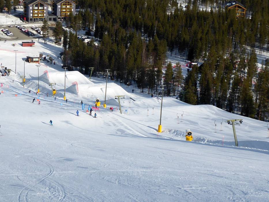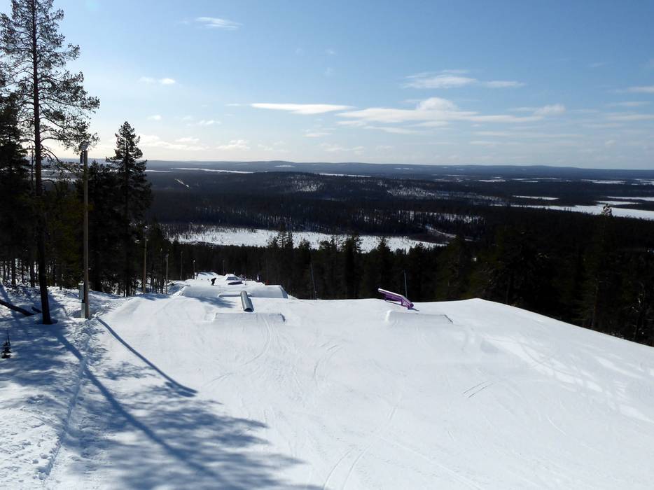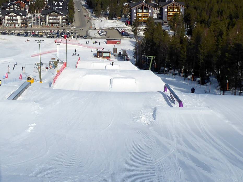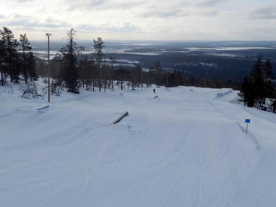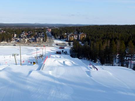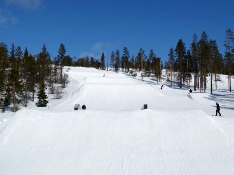 Der Snowpark und die Superpipe befindet sich an den Front Slopes mit einem direktem Blick auf Levi Center. Hier findet man attraktive Obstacles für gute Freestyler und Snowboarder.