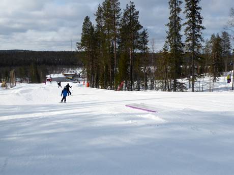 Der Mini Park Levi befindet sich am Tellerlift Leevilandia am South Point. Dieser Park ist ideal für kleinere Kinder und Anfänger mit den einfachsten Obstacles im Skigebiet Levi.