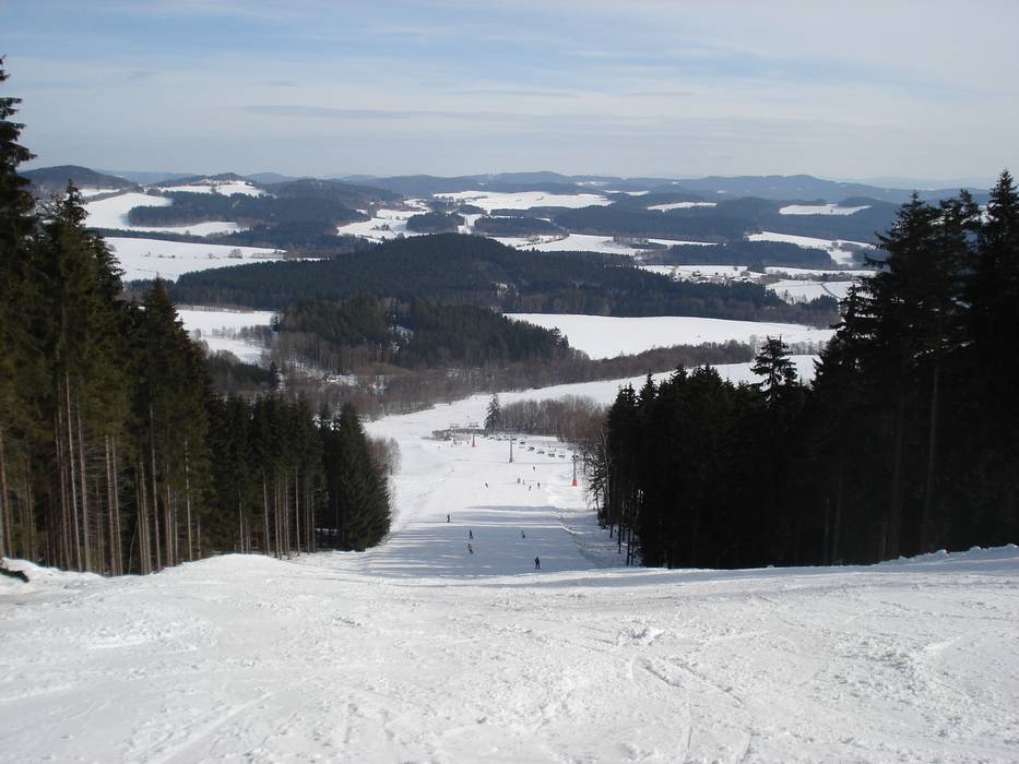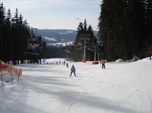 Breite Waldschneisenabfahrt An der Talstation herrscht reges Treiben