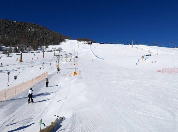 Die Pisten in den oberen Teilen des Skigebiets sind in der Regel anspruchsvoller. Am Mottolino finden Anfänger einen Übungsbereich und sie können über eine leichte Piste bis hinunter ins Tal schwingen. Die Talabfahrten am Carosello 3000 und bei Costaccia sind mindestens mittelschwer