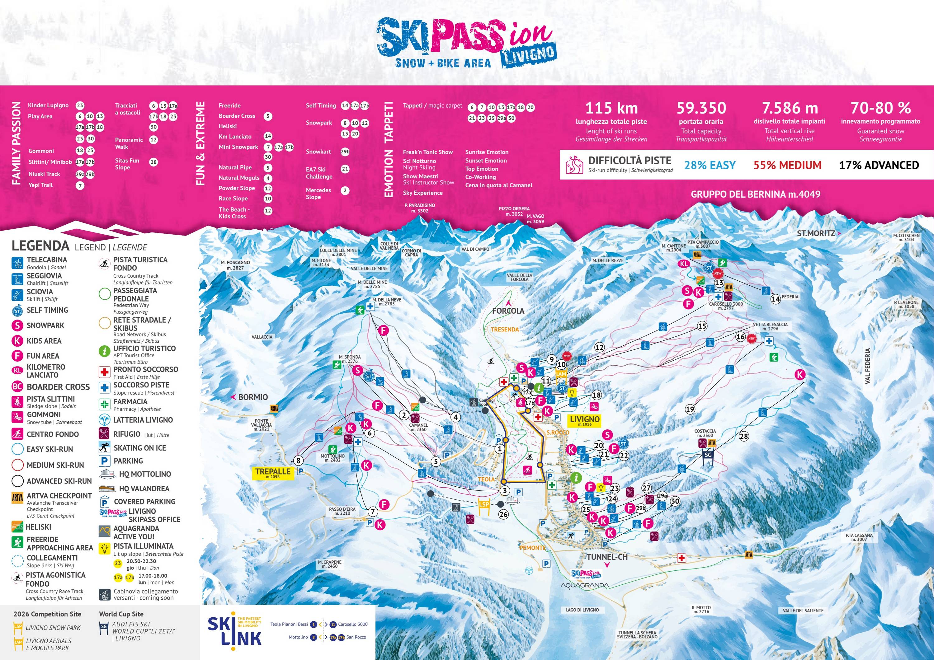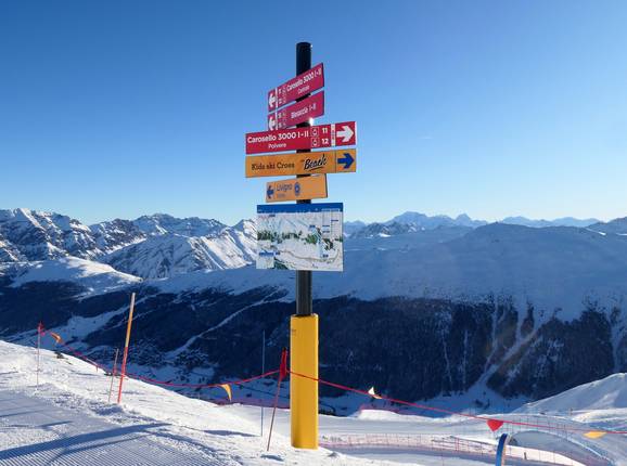 Orientierung (Pistenplan, Informationstafeln, Ausschilderung) und Sicherheit im Skigebiet Livigno
