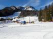 Das Skikinderland bietet ein Förderband für die ersten Versuche im Schnee. Weiter geht es dann mit den Übungsliften. Im Skikinderland können die Kleinen in Ruhe das Skifahren erlernen.