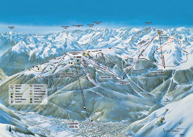 Die neue 10er-Kabinenbahn Crémaillère Express verbindet den Talort Luchon mit Superbagnères und dem Skigebiet. Die moderne Liftanlage ersetzt die 4er-Gondelbahn Luchon-Superbagnères. Mit der deutlich erhöhten Förderkapazität und den komfortablen Kabinen macht die 10er-Gondelbahn Crémaillère Express Autofahrten auf der Bergstraße ins Skigebiet für Gäste überflüssig.