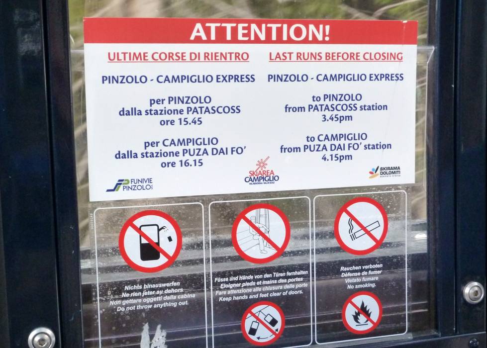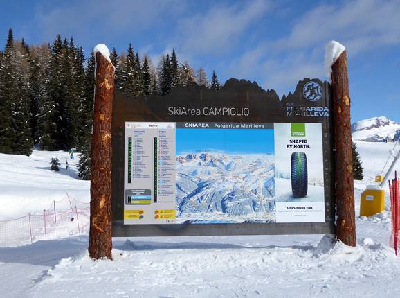 Orientierung (Pistenplan, Informationstafeln, Ausschilderung) und Sicherheit im Skigebiet Madonna di Campiglio/Pinzolo/Folgàrida/Marilleva