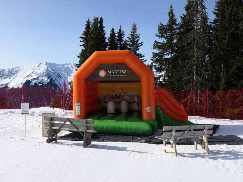 Das Madrisa-Land ist ein weitläufiges Übungsgelände direkt an der Bergstation der Gondelbahn und bietet mehrere Zauberteppiche für kleine und große Entdecker. Lustige Figuren und die Slalompiste sorgen für erste aufregende Abfahrten. Doch der Park hat noch mehr zu bieten: Ob Schlitteln mit Funridern oder Toben auf der großen Hüpfburg – hier kommt jeder auf seine Kosten. Von der sonnigen Terrasse der Madrisa-Alp hat man das gesamte Übungsgelände stets gut im Blick.