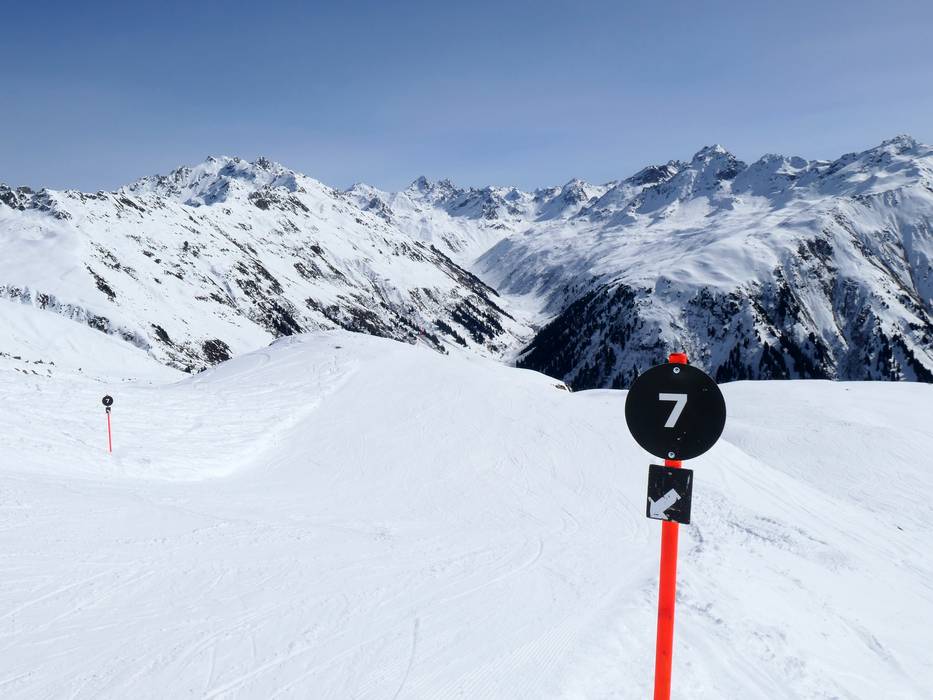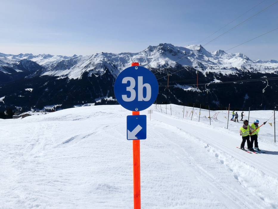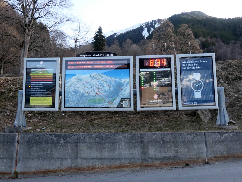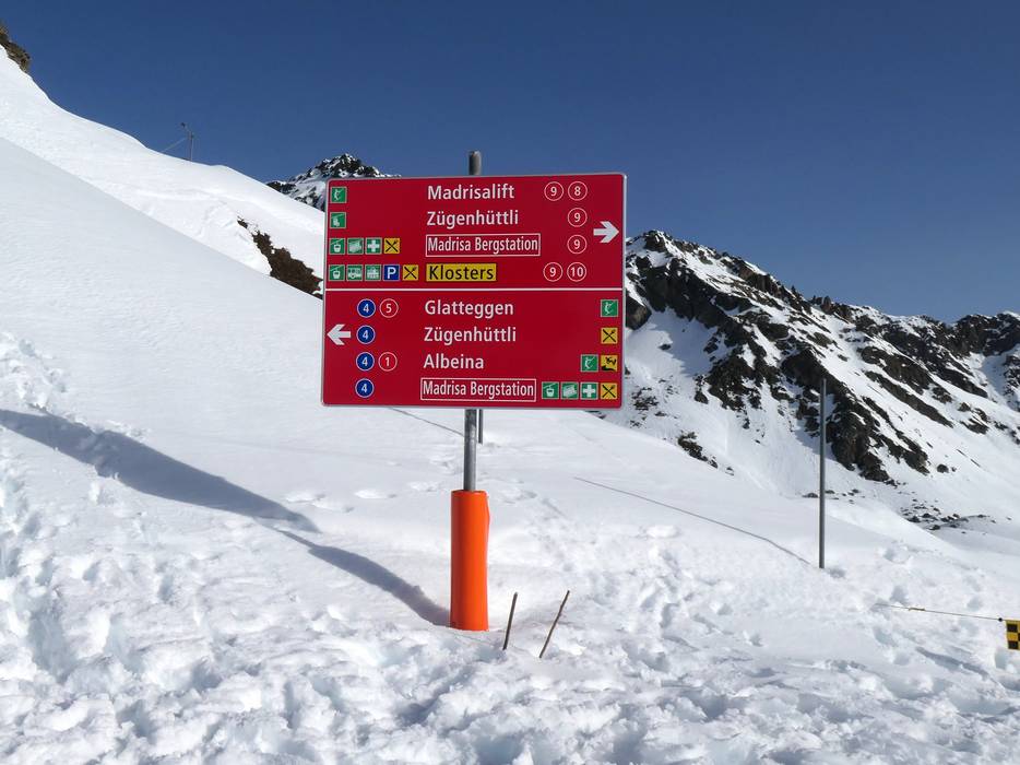 Orientierung (Pistenplan, Informationstafeln, Ausschilderung) und Sicherheit im Skigebiet Madrisa (Davos Klosters)