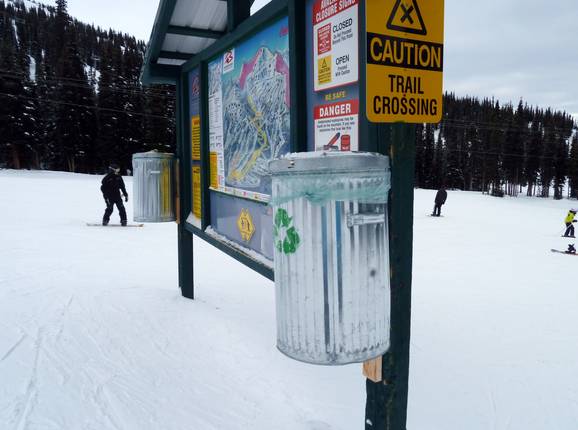 Das Skigebiet Marmot Basin macht einen gepflegten Eindruck. Parkplätze, Kassen, Toiletten und Restaurants sind in einem guten Zustand. Überall im Skigebiet sind ausreichend Mülleimer aufgestellt.