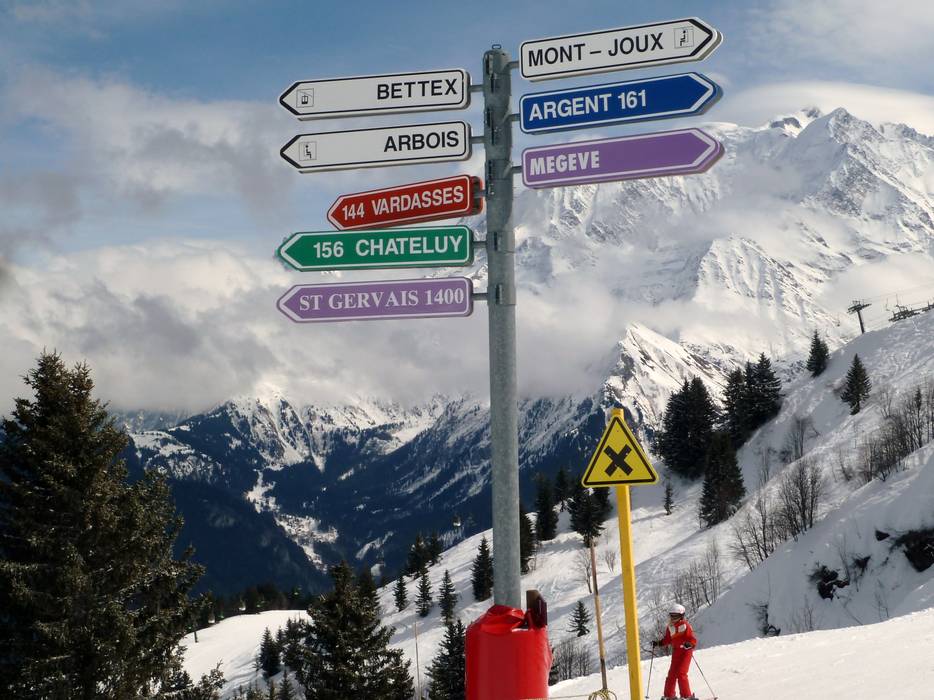 Orientierung (Pistenplan, Informationstafeln, Ausschilderung) und Sicherheit im Skigebiet Megève/Saint-Gervais