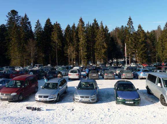 Parkplätze: meist ausreichend vorhanden, asphaltierter Platz, kostenpflichtig