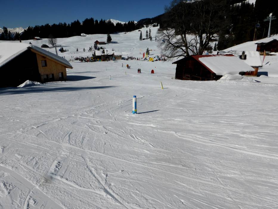 Das sehr gute Skischulübungsgelände liegt zentral im Skigebiet und ist leicht zu erreichen. Hier stehen den Kindern unter anderem Kinderskilifte, Förderbänder, Wellenbahnen und ein Karussell zur Verfügung. Für die Snowboardanfänger ist der Snowboardlift, der den Snowboardern vorbehalten ist, ein ganz besonderes Highlight. Die Kinder können sich im Iglu-Dorf amüsieren und auf dem Rutschbahnturm herumklettern. Nachmittags und am Wochenende ist das Skihäsliland auch für Nicht-Teilnehmer des Skikurses geöffnet. Am Skihäsliland befinden sich zwei Restaurants (Familienrestaurant Bidmi und das Bärgbeizli Bidmi), in denen die Kinder spezielle Mittagsangebote erhalten.