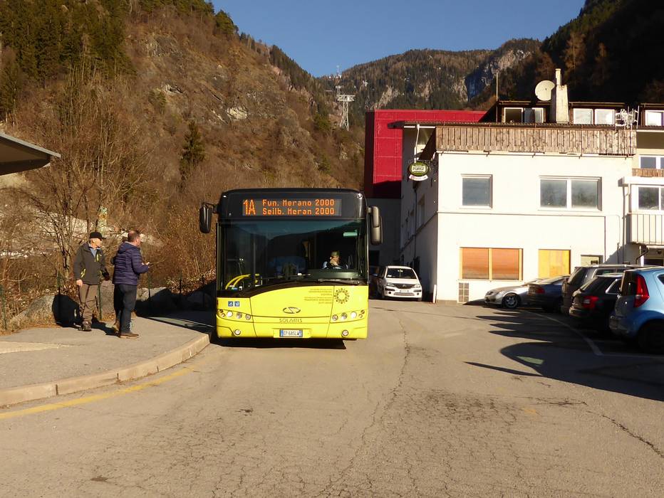 Der nächste Bahnhof befindet sich in Meran. Die Talstation des Skigebiets Meran 2000 ist ab Meran Hauptbahnhof bequem mit den öffentlichen Verkehrsmitteln erreichbar. - Skibusse