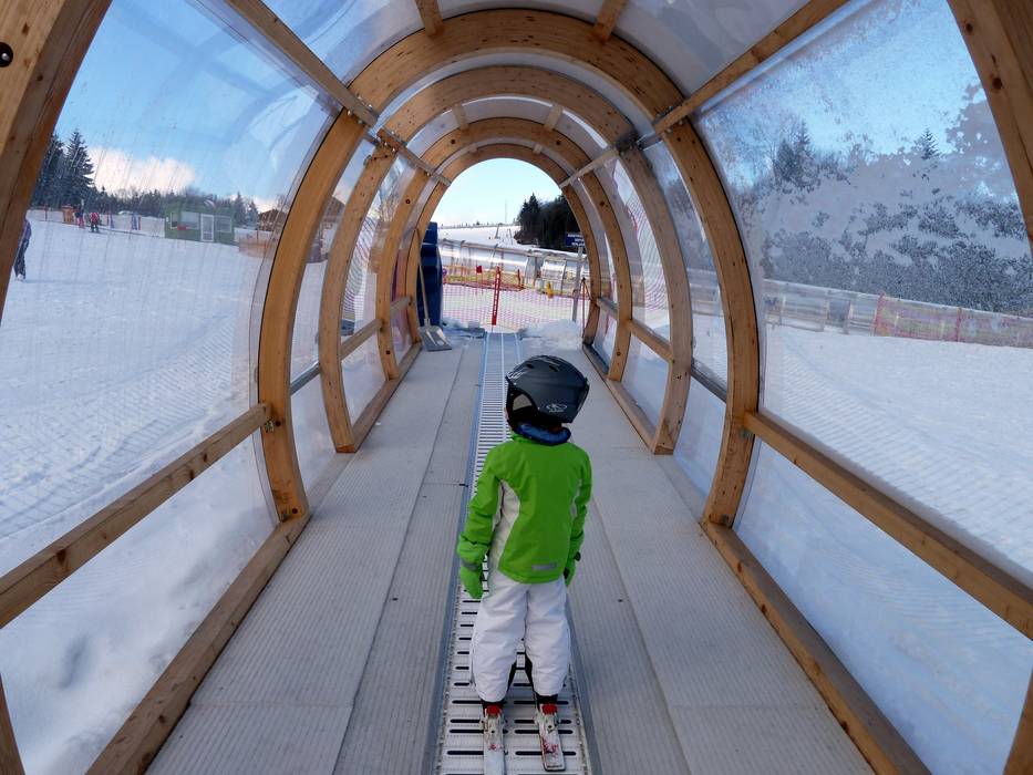 Auf der Almwiese wartet ein 186 m langes überdachtes Förderband mit Rodelbahn und Rodelverleih an der Talstation Alpe. Das Förderband erschließt auch ein Übungsgelände zum Skifahren.