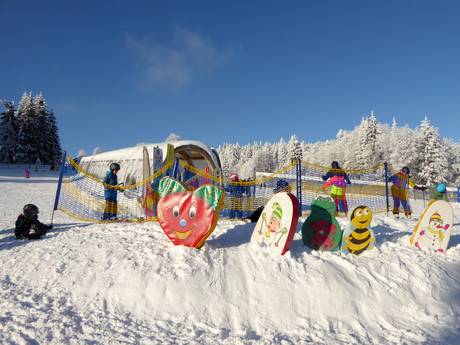 Das Skigebiet Mitterdorf ist besonders familienfreundlich im Bayerischen Wald. Fast alle Pisten eignen sich hervorragend für Familien, und die Sesselbahnen sind mit Kindersicherung ausgestattet. Der Junior-Ski-Zirkus bietet ein erstklassiges Gelände für Ski-Zwergerl und Anfänger, mit überdachten Förderbändern und kindgerechtem Lehrmaterial – ideal für die ersten Brettl-Erfahrungen. Eine Rodelbahn mit eigenem Förderband ergänzt das Angebot. Besonders hervorzuheben sind die günstigen Familienkarten.