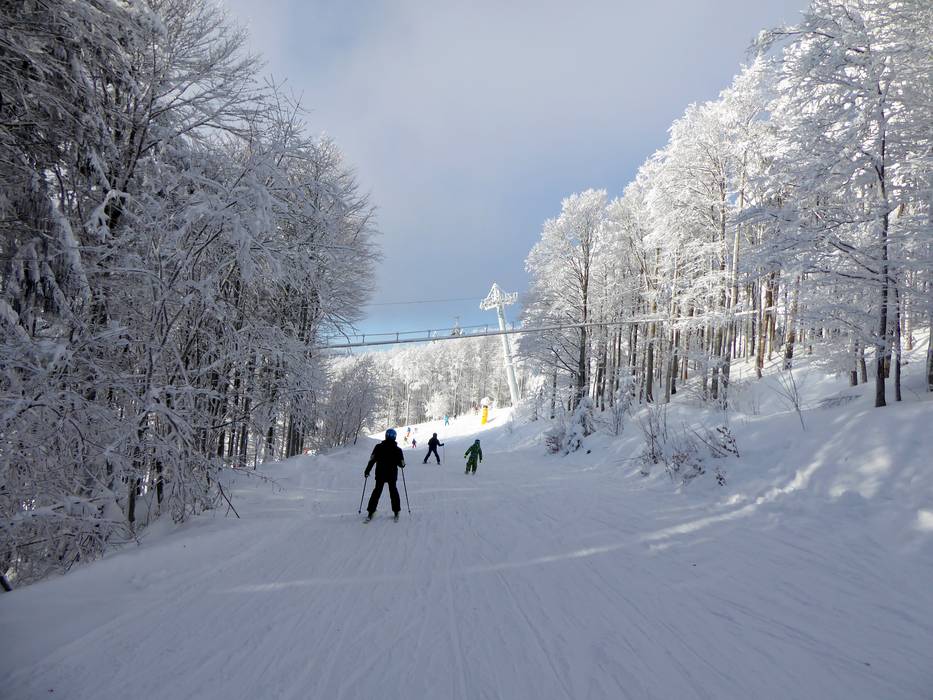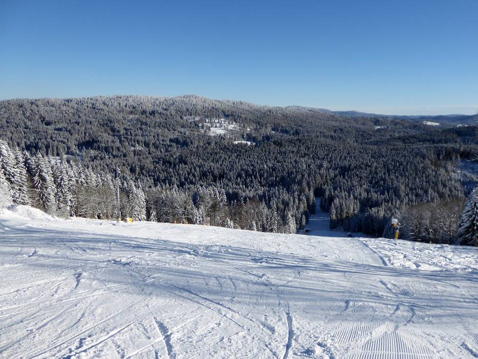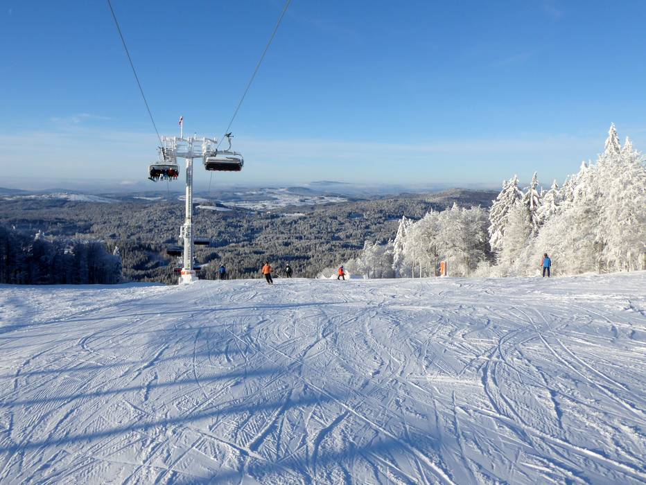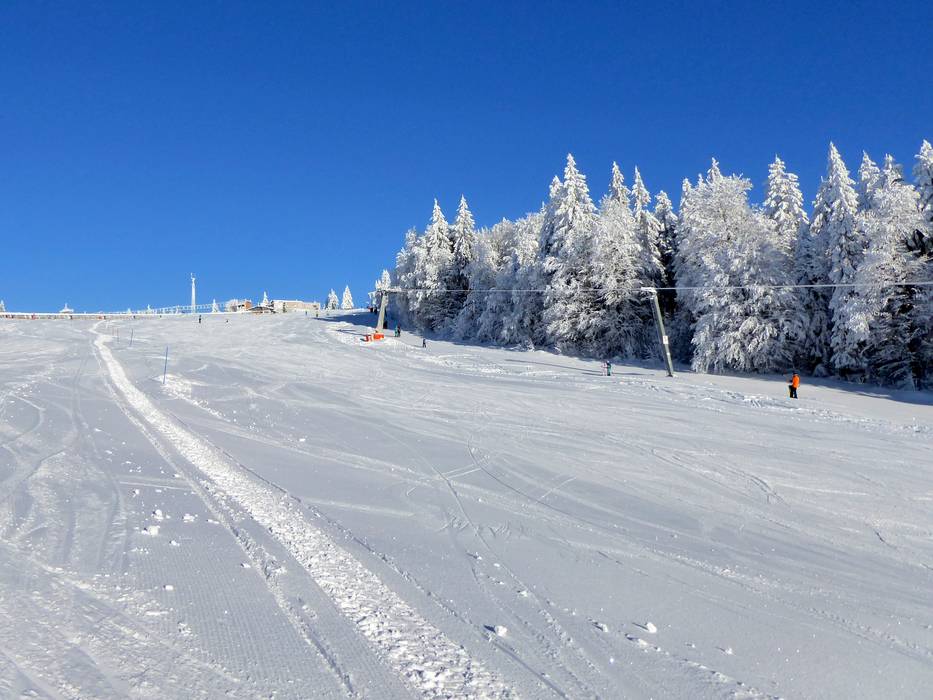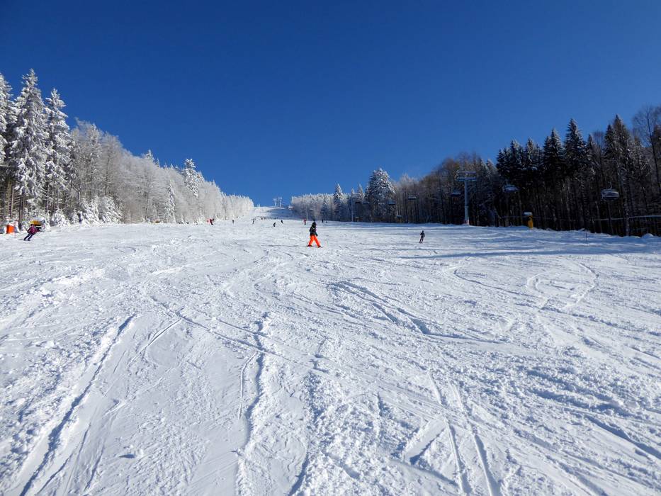 Die mittelschwere Abfahrt führt vom Gipfel parallel zur Sesselbahn bis zur Talstation.