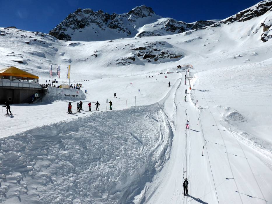 Direkt an der Mittelstation gibt es zwei Übungslifte mit einem sehr guten Übungsareal. Anfänger können auch auf den leichten Gletscherabfahrten und leichten Abfahrten zur Panoramabahn Klühspies üben. Die Pisten an der Vierersesselbahn Alteck und vom Eissee zur Mittelstation sind für Anfänger nicht zu empfehlen.