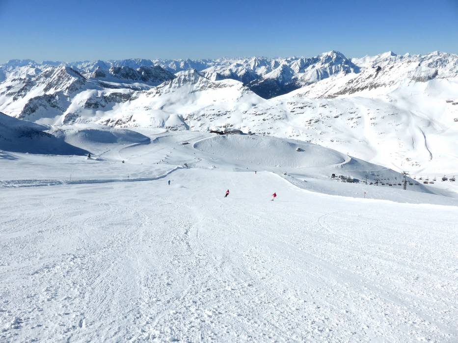 Höchste Punkt im Skigebiet/Bergstation Gletscher Jet - Piste 3 - Piste 10 - Piste 9 - Mittelstation- Piste 12 - Talstation Schwarzkopfbahn