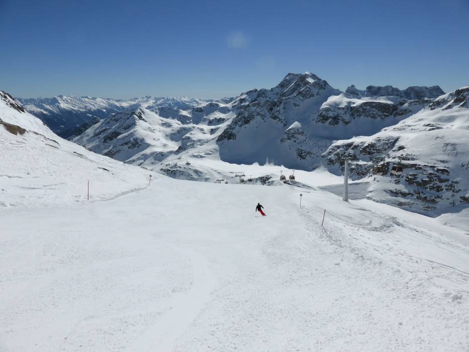 Die Standseilbahn bringt die Gäste ins Tal. Skibetrieb ist bis zur Talstation der Schwarzkopfbahn auf 2108 m möglich.