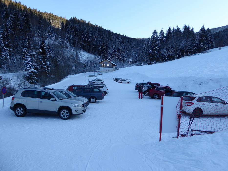 Parkplätze: meist ausreichend vorhanden, asphaltierter Platz, Kiesplatz, kostenfrei
