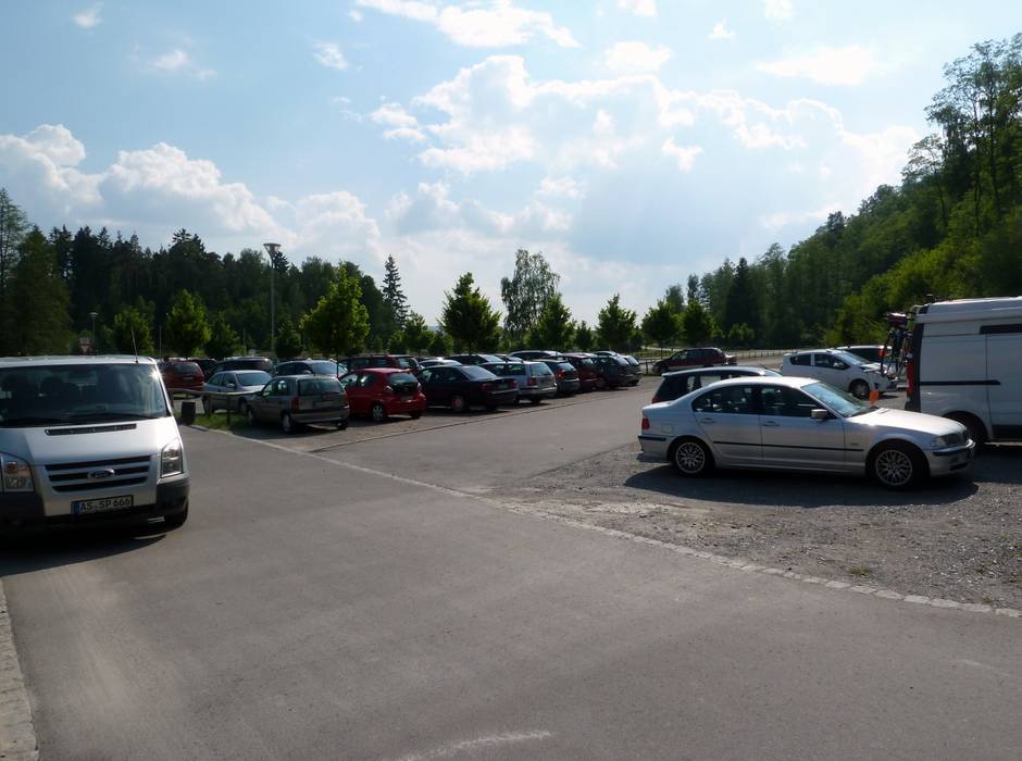 Parkplätze: ausreichend vorhanden, asphaltierter Platz, Kiesplatz, kostenfrei