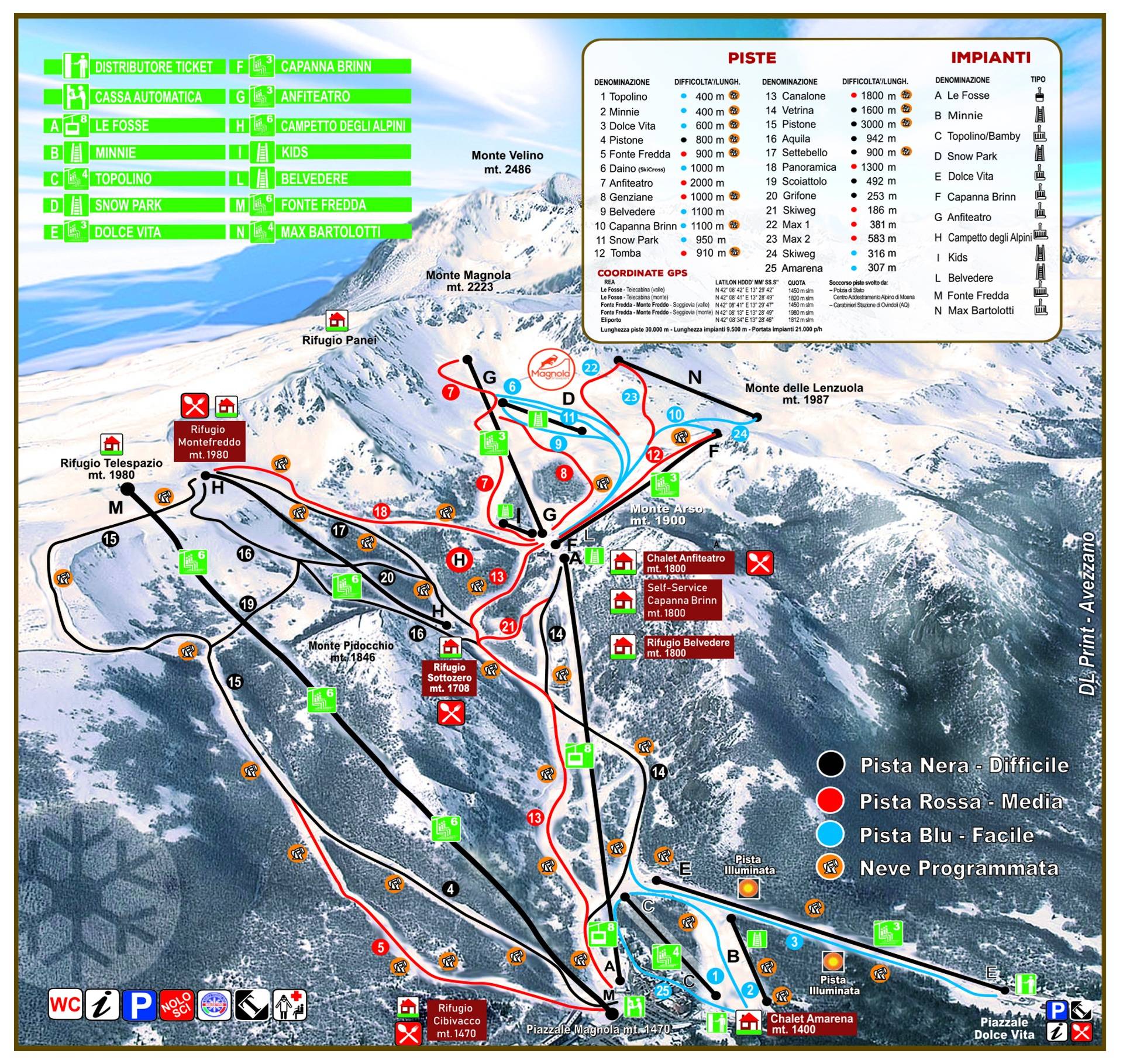 Pistenplan Monte Magnola – Ovindoli Saison 2024/2025