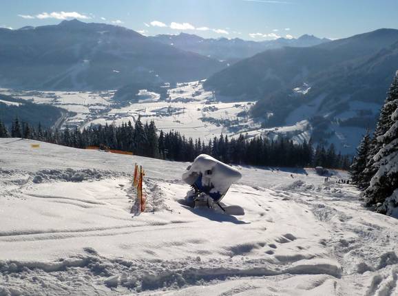 Fast das gesamte Skigebiet kann beschneit werden. Die Talabfahrt ist meist vom ersten bis zum letzten Tag der Saison geöffnet.