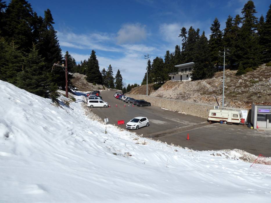 Das Skigebiet am Mount Parnassos liegt in Mittelgriechenland (Zentralgriechenland) zwischen den bekannten Städten Athen (ca. 180 km/2,5 Stunden) und Thessaloniki (ca. 370 km/4 Stunden). Zu den beiden Talstationen Kellaria (1750 m) und Fterolakka (1650 m) führen von beiden Seiten Bergstraßen. Man parkt auf bestens asphaltierten Parkplätzen direkt rund um die Talstationen. Von Fterolakka führt eine weitere Bergstraße hinauf bis zur Mittelstation Fterolakka (1850 m) mit weiteren Parkplätzen. Das Parken ist überall kostenfrei. Bei Neuschnee empfiehlt es sich Schneeketten mitzunehmen. Diese können in den Talorten auch unkompliziert gemietet werden.Anfahrt über