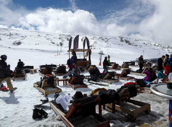 An den Wochenenden feiern die Wintersportler bei guter Musik vor dem Chalet. Ein DJ heizt ordentlich ein. Hier ist dann richtig Party angesagt.