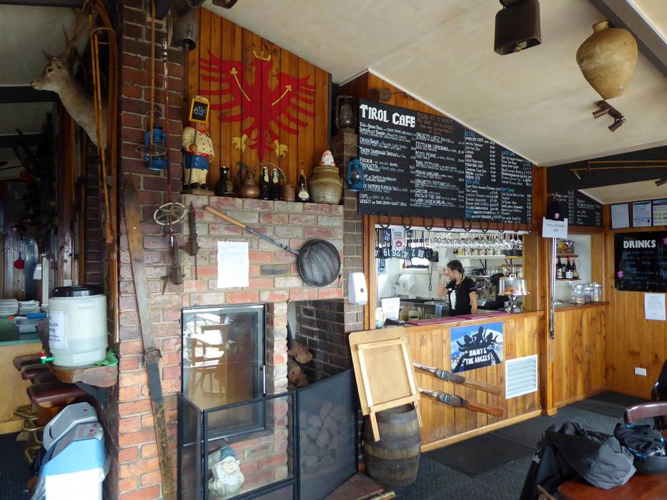 Im Tirol Café fühlt man sich wie in einer Tiroler Skihütte. Es werden typische Hüttengerichte serviert. Bei schönem Wetter hat man einen herrlichen Ausblick von der Sonnenterrasse.