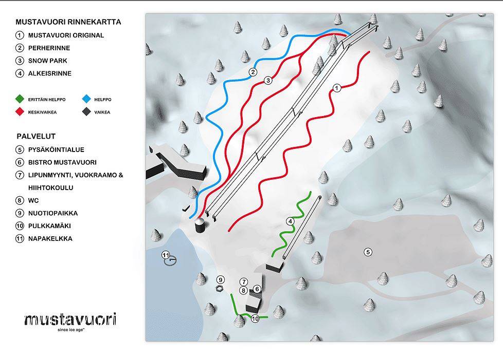 Pistenplan vom Skigebiet Mustavuori – Tampere