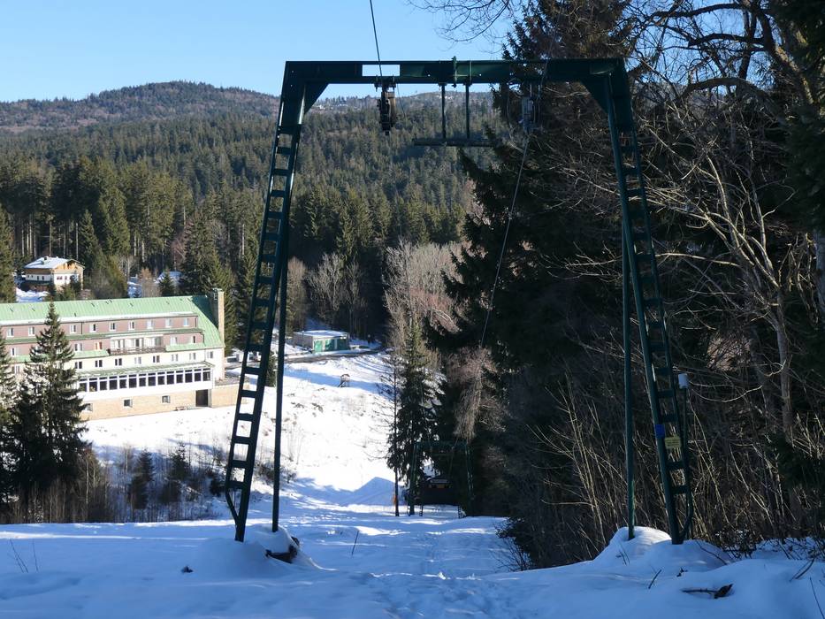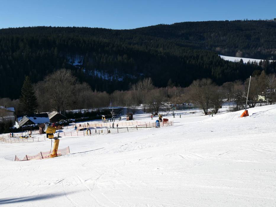 Leichte Piste in Nad Nádražím Leichte Pisten im Tal in Nad Nádražím Mittelschwere Piste in Belveder Leichte Piste in Nad Nádražím Leichte Piste in Nad Nádražím Leichte Piste im Tal in Nad Nádražím Mittelschwere Piste in Belveder A. Nádraží - Doppelmayr - Schlepplift mit… B. Nádraží - Tatrapoma - Tellerlift C. Nádražíčko - Förderband/Zauberteppich D. Tatrapoma H80 - Tellerlift F. Transporta I - Schlepplift mit… E. Transporta II - Schlepplift mit… Sehr gute Pistenpräparierung Sehr gute Pistenpräparierung Ausschilderung mit Pistenplan Kassenbereich in Nad Nádražím Gastronomie in Nad Nádražím Hotel Belvedér an der Bergstation Bild Nad Nádražím/Belveder – Železná Ruda