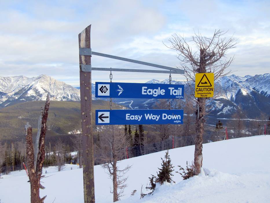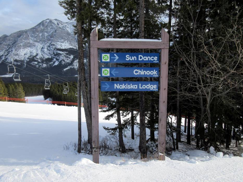 Orientierung (Pistenplan, Informationstafeln, Ausschilderung) und Sicherheit im Skigebiet Nakiska
