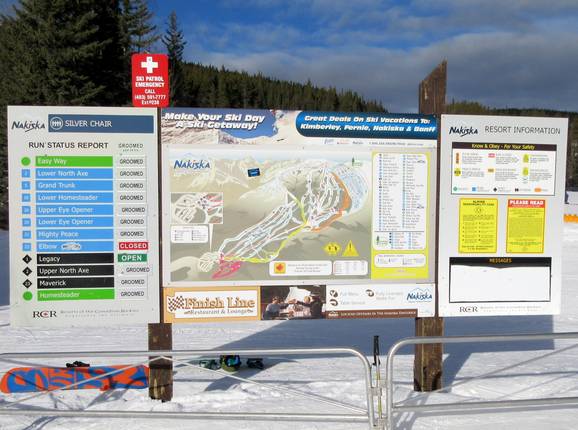 Das Skigebiet Nakiska bietet an den Talstationen detaillierte Informationen zu den geöffneten Pisten und Liften. Zudem sind an allen wichtigen Punkten große Pistenpläne angebracht. Jede Abfahrt ist mit Namen ausgeschildert. Man findet sich somit immer sehr gut zurecht.