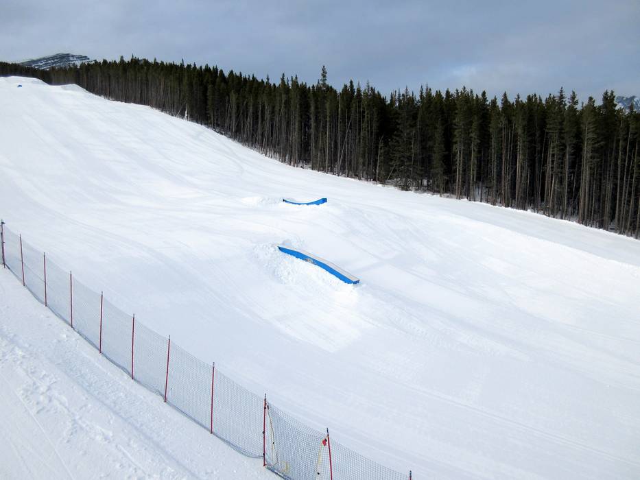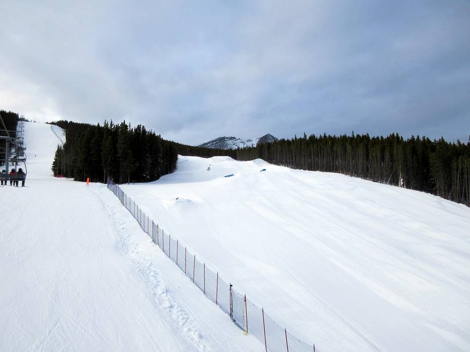 Das Skigebiet Nakiska bietet einen schönen Snowpark am Elbow Trail.