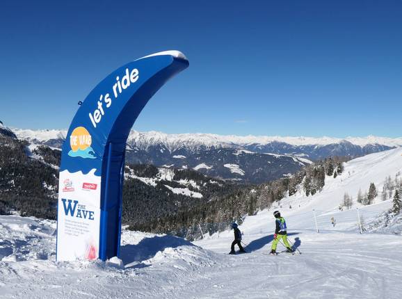 Auf der Kidsslope „The Wave" begeistern Steilkurven, Hindernisse, Wellen und Sprünge.
