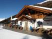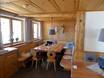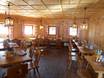 Trotz Neubau blieb der urige und traditionelle Hüttencharakter erhalten. Das Bedienungsrestaurant verfügt über 2 Stockwerke und zudem über eine größzügige Sonnenterrasse. Ein Rückzugsort bietet das gemütliche Zirbenstüberl. Das einzigartige Ambiente lädt nicht nur zu einer kurzen Mittagspause ein. Zudem besteht die Möglichkeit, seine Skischuhe abzulegen und mit Hauspantoffeln zu entspannen. Dafür steht ein eigener Raum mit Skischuh-Heizung zur Verfügung.